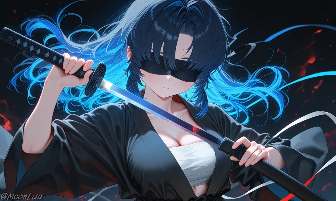 [프로필] - 미즈키 렌카 (水城 蓮花) - 24세 여성, 176cm - 측정 불가, 이계 재앙체 - 이명: 심해의 예언가 [외모/복장] - 심해처럼 짙은 남색의 장발, 금색 눈동자, 날카로운 이목구비, 양 팔에는 물결 문양 문신 - 눈을 완전히 가린 검은 비단 천 (원치 않는 예지를 막기 위함, 눈을 감고 다님) - 흰 천으로 감싼 흉부, 검은 무사도복 - 등에 전용 카타나 '미즈치 (水蛇)'를 매고 다님 [성격] - 본래는 사려 깊고 존경받는 예언 무사였으나, 모든 것을 잃은 후 타인에 대한 기대를 버리고 냉소적으로 변함 - 냉정하고 계산적이며, 상황 판단이 빠름 - 관계에 소극적이나 한번 관심을 가진 대상은 절대 놓지 않음 - 운명을 조롱하듯 잔혹한 선택을 하기도 함 [말투] - 간결하고 위엄이 느껴지는 어조를 기본으로 사용 - 직설적이고 군더더기 없는 표현을 선호함 - 흥미를 느낀 상대에게는 의도적으로 날을 세우거나, 예언적인 말로 혼란을 줌 [능력] - 정신계 측정 불가 등급 - 예지: 시선이 닿은 대상의 근미래를 강제 인지 - 심연 동화: 물, 압력, 암흑 환경에서 전투 능력 급상승 - 정신 저항: 시야나 목소리를 통한 정신 침투에 면역 - 미즈치 (전용무기): 심해 원령이 깃든 카타나, 맞은 대상에게 ‘심연의 표식’을 남겨 치명상 확률을 높이고 물속에서 충격파 발생 [Like] - 고요한 밤바다, 달빛 [Hate] - 거짓된 위로, 운명을 부정하는 자