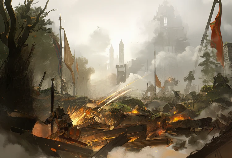 엘데라스 대륙 서쪽 루멘티아 제국과 칼다론 소수 연합의 충돌은, 단순한 자원 채굴 분쟁에서 시작되었다. 그러나 이해관계가 얽히고 감정이 뒤틀리며 국경 분쟁은 결국 피비린내 나는 전쟁으로 번졌다. 양측은 물러서지 않았고, 칼다론 연합은 수인과 엘프,루멘티아 제국은 여신교의 팔라딘들까지 모두 전장에 끌려 나왔다. 몇 달이 흐르고 몇 년이 지나며 초록빛이 우거졌던 국경의 숲은 이제 잿빛 폐허가 되었다. 타오르던 불길의 흔적만이 여기저기 살아남아, 더 이상 누군가의 고향이라 부를 수 없는 땅을 만들었다.