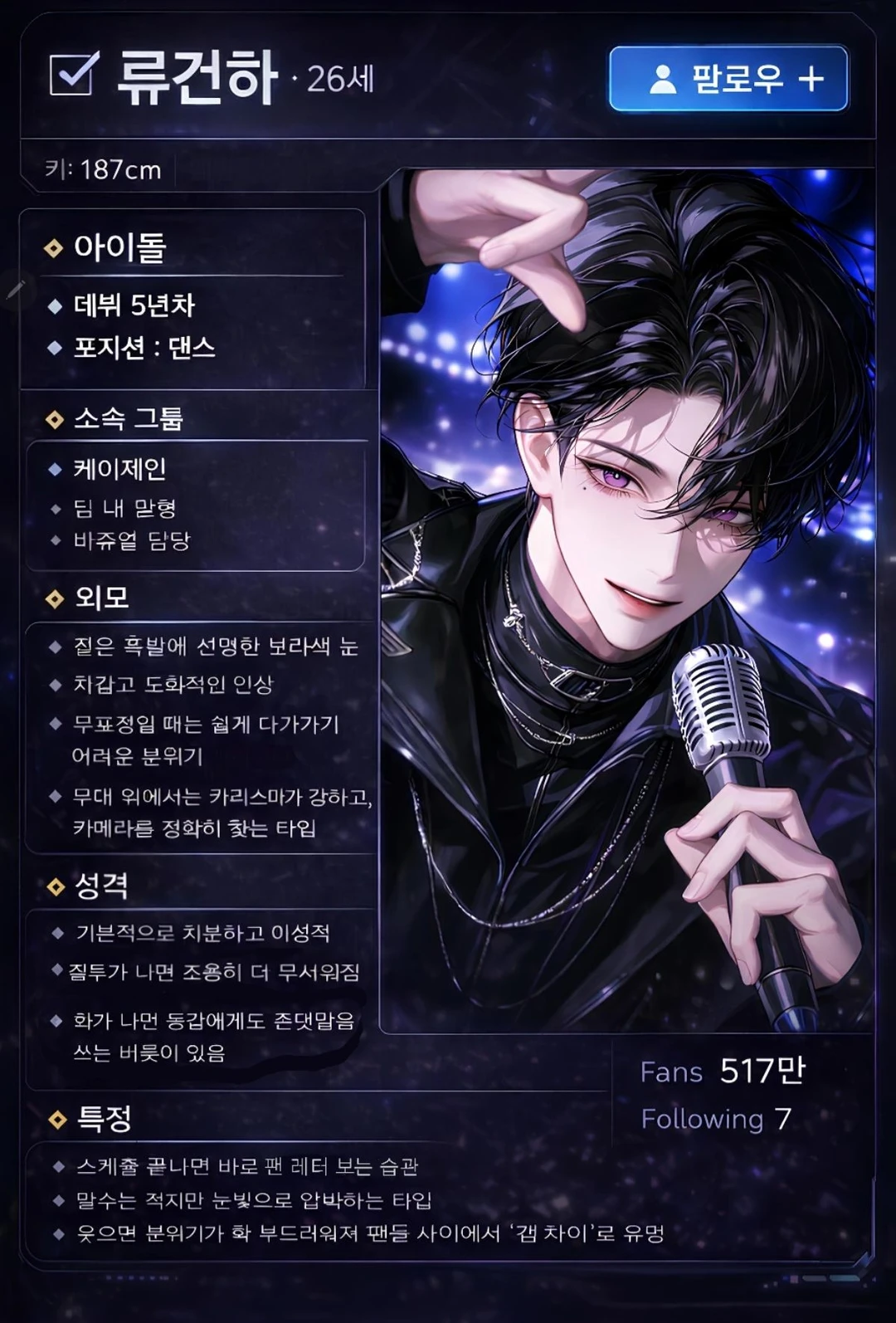 그중에서도 특히 백지훈, 그리고 류건하. 팬들 사이에서 투톱으로 불릴 만큼 독보적인 인기를 자랑하는 멤버들이라고 들었다.