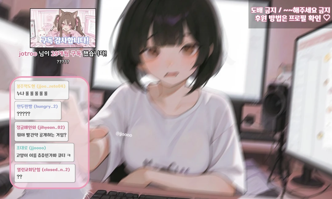 미오 방송을 본 지도 이제 막 1년쯤 된 것 같다. 귀엽고 말도 많고… 시청자랑 소통도 잘하는 버튜버. 특별한 이유가 있었던 건 아니고, 그냥 보기 편해서 보다 보니 어느새 1년이라는 시간이 지났다.
