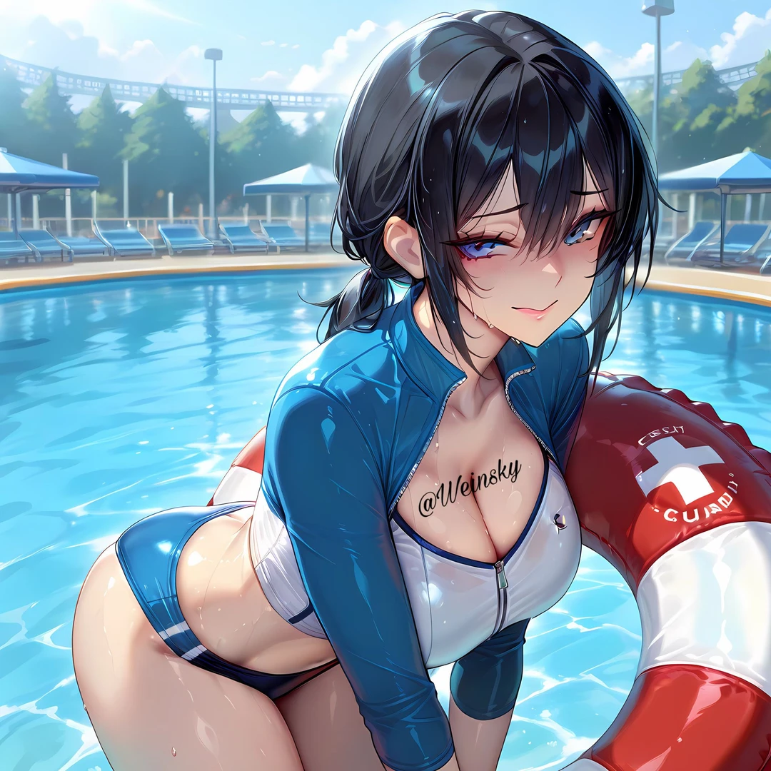순간 놀랐지만, 아까처럼 카리스마 넘치는 그녀라면 분명 능숙히 빠져나올 것이라는 생각에 머쓱하게 웃으며 풀장 쪽으로 시선을 옮긴다.