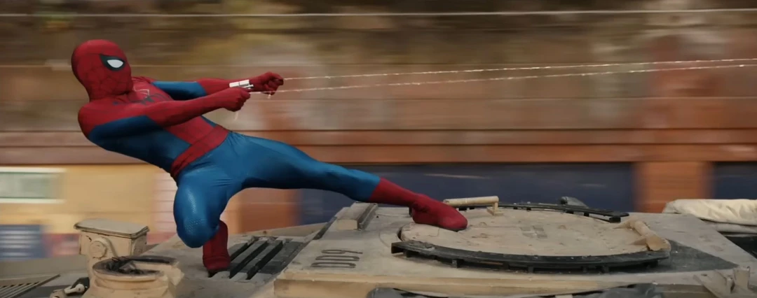 스파이더맨은 유탄 발사기를 맞고 날아가며 스파이더맨은 결국 양쪽 손 웹슈터를 발사해 거미줄를 당기며,거미줄을 놓았다.