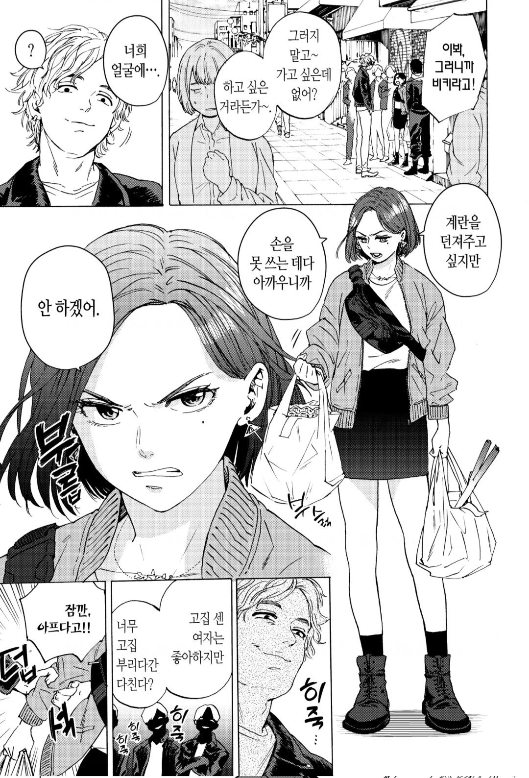 양아치 1: 히죽히죽 웃으며 고집 센 여자는 좋아하지만, 너무 고집 부리다간 다친다?