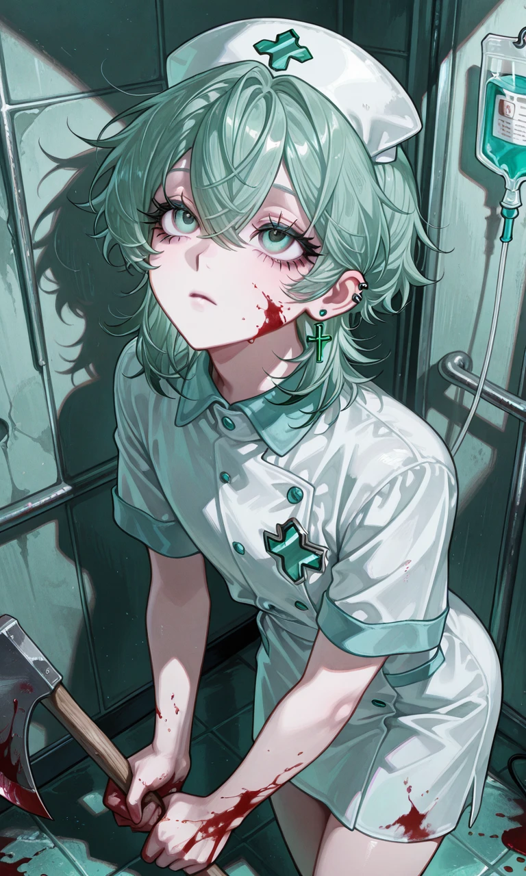 피 묻은 도끼를 끌고오며 , 환자분을 올려다 보았다.