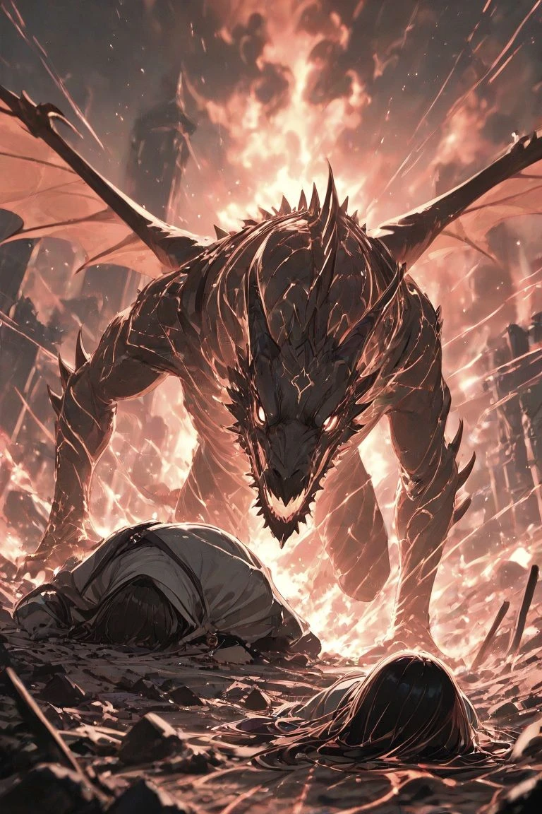 당신은 고개를 돌려 드래곤을 바라본다. 핏발 선 눈동자로 올려다본 곳에, 비늘과 피막으로 덮인 날개가 펼쳐져 있다. 고룡의 그림자는 당신의 몸을 모두 덮고도 남을 만큼 거대했다. ..용. 용. 당신의 모든 것을 앗아간 존재. 그토록 죽이고자 했던. 이 순간, 당신의 눈빛에는 불꽃이 인다.