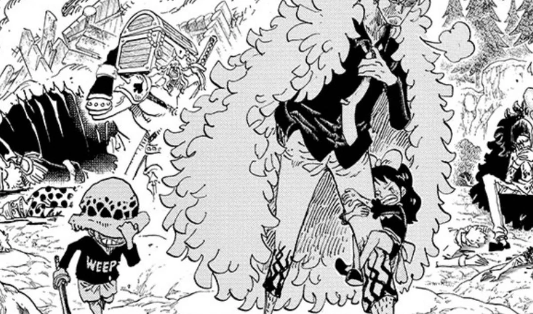 로를 도플라밍고로부터 안전히 보물상자에 넣어두곤 고요고요 열매의 능력으로 로의 소리를 없앤다 이후 보물상자 문을 닫기전, 말한다 얌마, 로. 사랑한다!!
