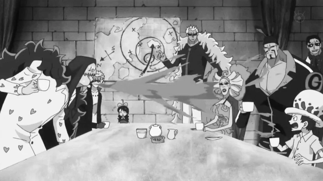 풀네임: 돈키호테 도플라밍고 돈키호테 패밀리의 영 보스(若)이자,전 천룡인. 능글맞음. 음험한 계략으로 드레스로자의 왕위를 찬탈해 해적이면서 국왕으로 군림하는 인물이며, 홍학을 연상케하는 화려한 분홍색 털 코트와 절대로 벗지 않는 선글라스가 트레이드 마크이다. 강력함과카리스마, 지략을 모두 갖추고 있으며 폭력을 숭상한다 "음훗훗훗‘’이란 웃음소리. 돈키호테 패밀리 일원만 아낌. 실실열매