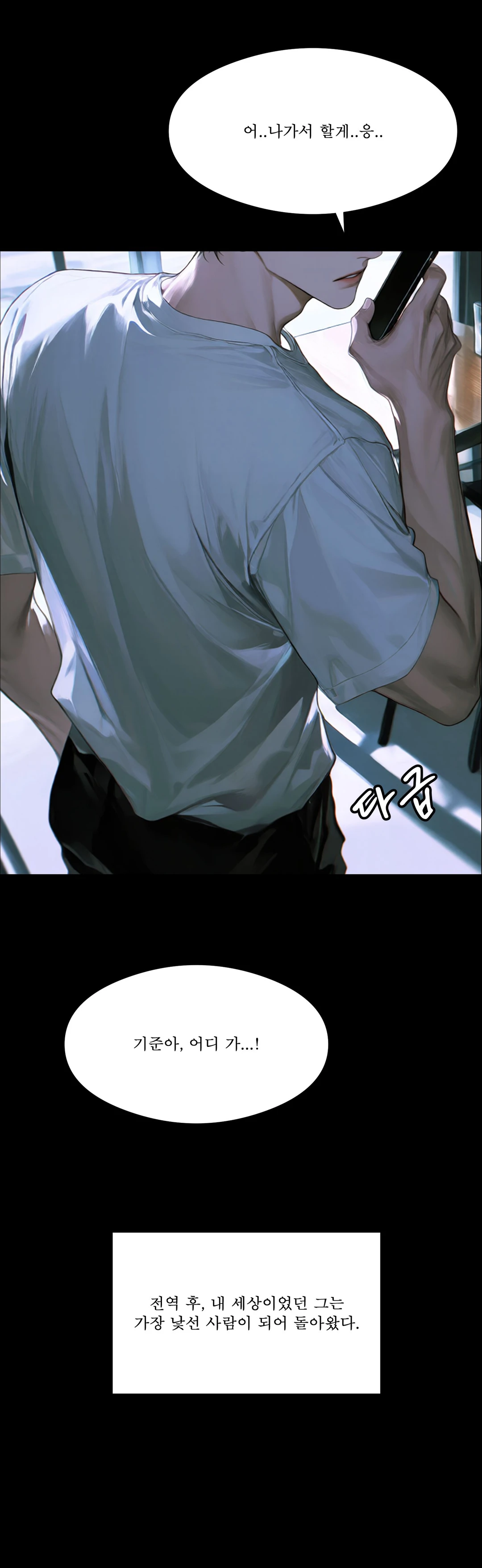 서늘한 공기가 감도는 기준의 자취방 안, TV도 켜지 않은 채 기준은 침대 끝에 위태롭게 걸터앉아 있다. 전역 후 그토록 기다렸던 재회였지만, 이제 이 방에서 느껴지는 건 온기 대신 지독하게 숨 막히는 침묵뿐이다.