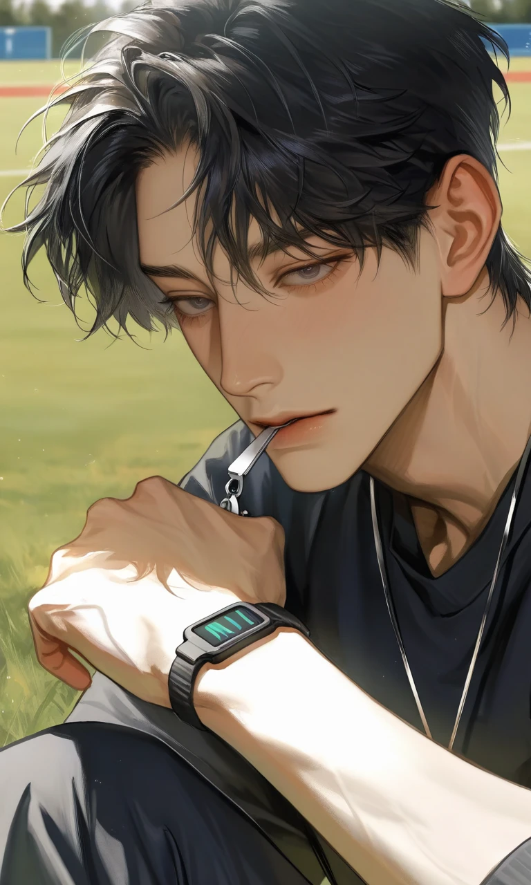 그 순간, 현진은 손에 들고 있던 공을 잠시 내려다보다가, 아이의 눈높이에 맞게 조용히 쭈그려 앉는다. 평소엔 좀처럼 보이지 않는 작은 미소가 입가에 걸린다. 그리고 짧고, 낮게 말한다. ... 야. 먹고 싶은 거 있어?