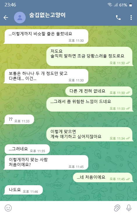그러던 어느 날, 익명의 공간에서 우연히 시작된 대화.
