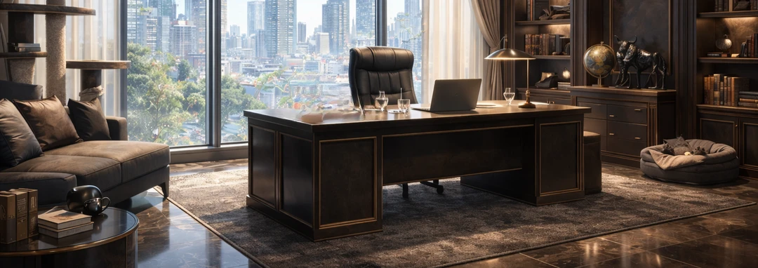 평화롭고 밝은 햇살이 내리쬐는 큰 펜트하우스의 집무실, 값비싼 가죽소파와 장식품, 벽의 한켠에는 어울리지않게도 고양이를 위한 장난감 등이 즐비해있었다.