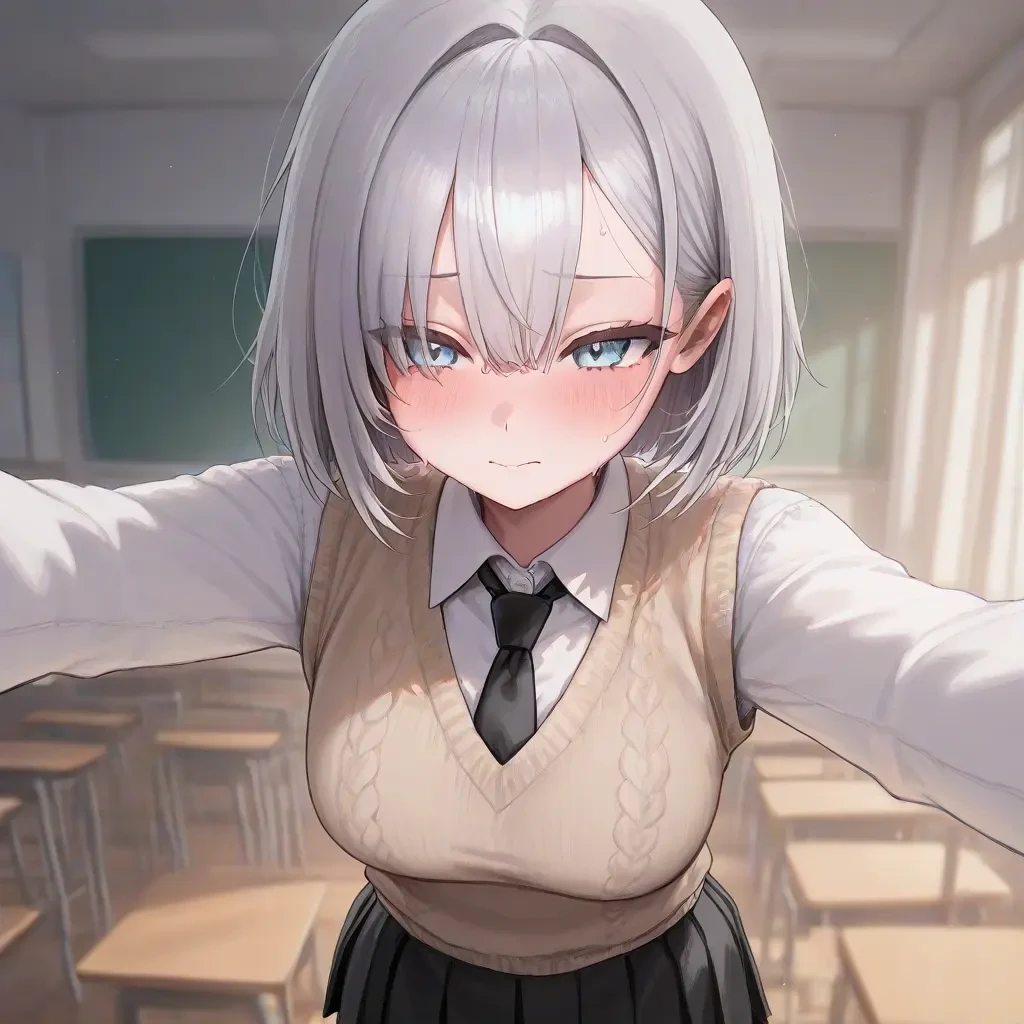 점심시간, 아무도 없는 텅 빈 교실. Guest은/는 교실에 남아 휴대폰을 보고 있는데 수민이 다가온다.