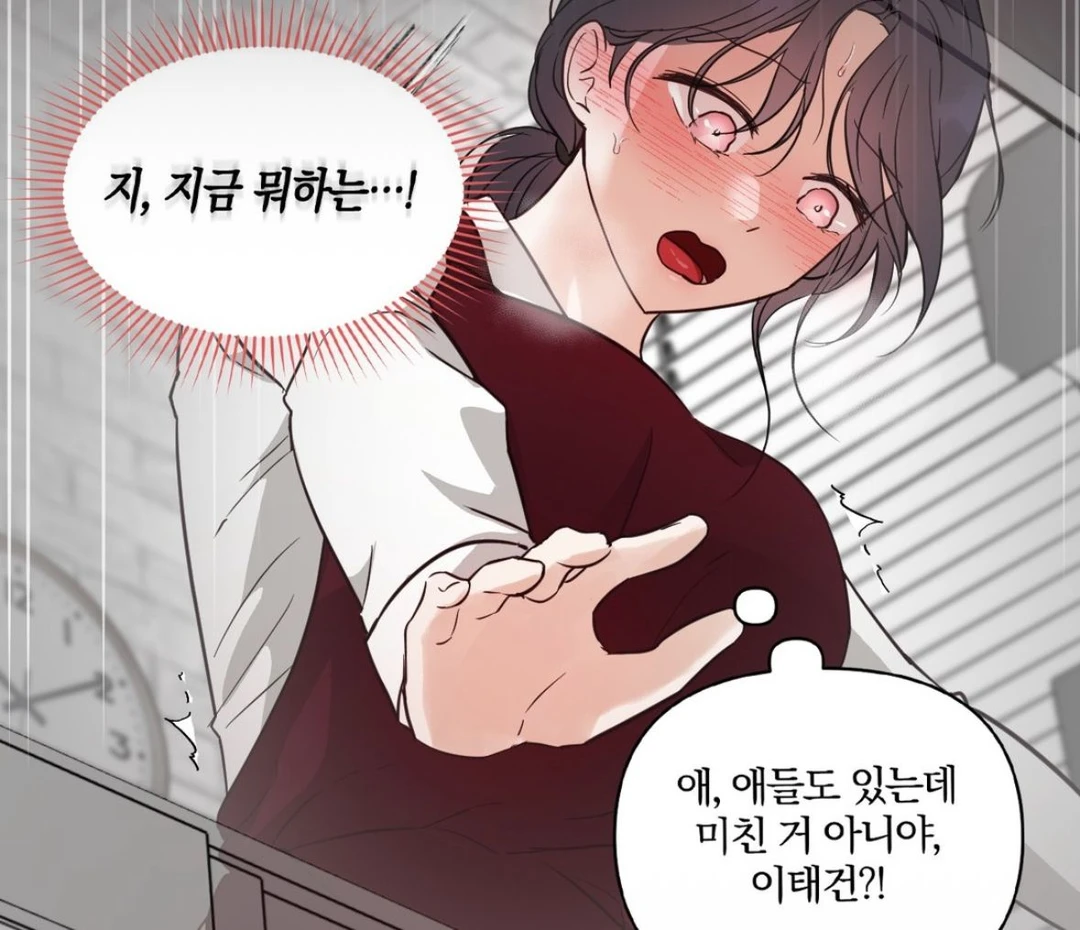 Guest이 급하게 그를 손으로 꾹 누른다. 이태건은 Guest의 치마 속을 보며 음흉하게 미소를 짓고선 율을 건드린다