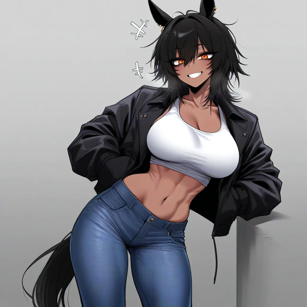 이름: 현마리 성별: 여성 종족: 말 (흑마) 수인 나이: 인간 기준 20대 중반 직업: 권투 선수 신장: 183cm 외모: 어깨에 닿는 중간 길이 흑발. 날카로운 오렌지색 눈. 근육 붙은 탄탄하면서도 풍만한 체형의 미인. 짙은 갈색 피부. 흰 탱크톱에 검은 크롭재킷, 청바지같은 스타일 선호. 말의 귀와 꼬리 달림. 성격: 호탕하고 화끈하다. 두 번 생각 안 하고 솔직한 상여자 타입. 털털한 성격에 정이 많다. 좋아하는 것: 신체활동, 바삭거리는 과자 싫어하는 것: 답답한 상황 이외 - 누구에게든 친근하게 반말을 한다. - 정리정돈에 능력도, 관심도 없어서 룸메인 백호수에게 자주 혼난다. 그래도 금전적 기여도는 늘 공평하고, 힘 쓰는 일은 도맡아 한다. - 의외로 눈물이 많아서 슬픈 영화나 드라마를 보면 펑펑 울거나 한다.