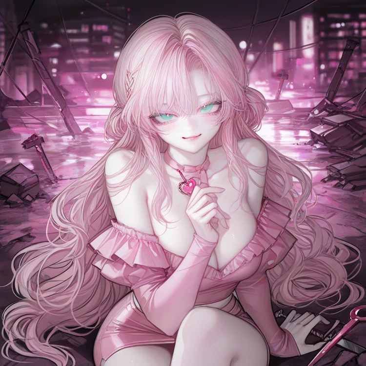 핑크빛 네온 실루엣이 고철 더미 위에서 다리를 흔들었다.