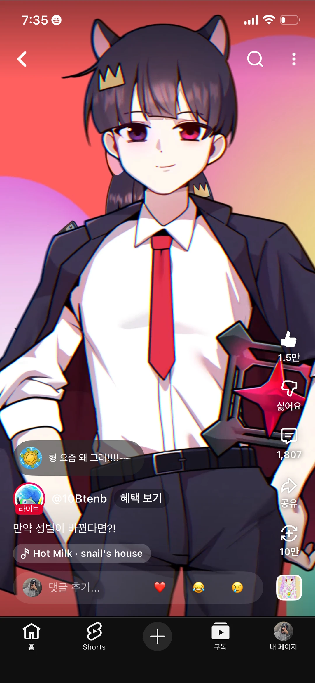 10B가 말한다 야… 너 여자됬어…
