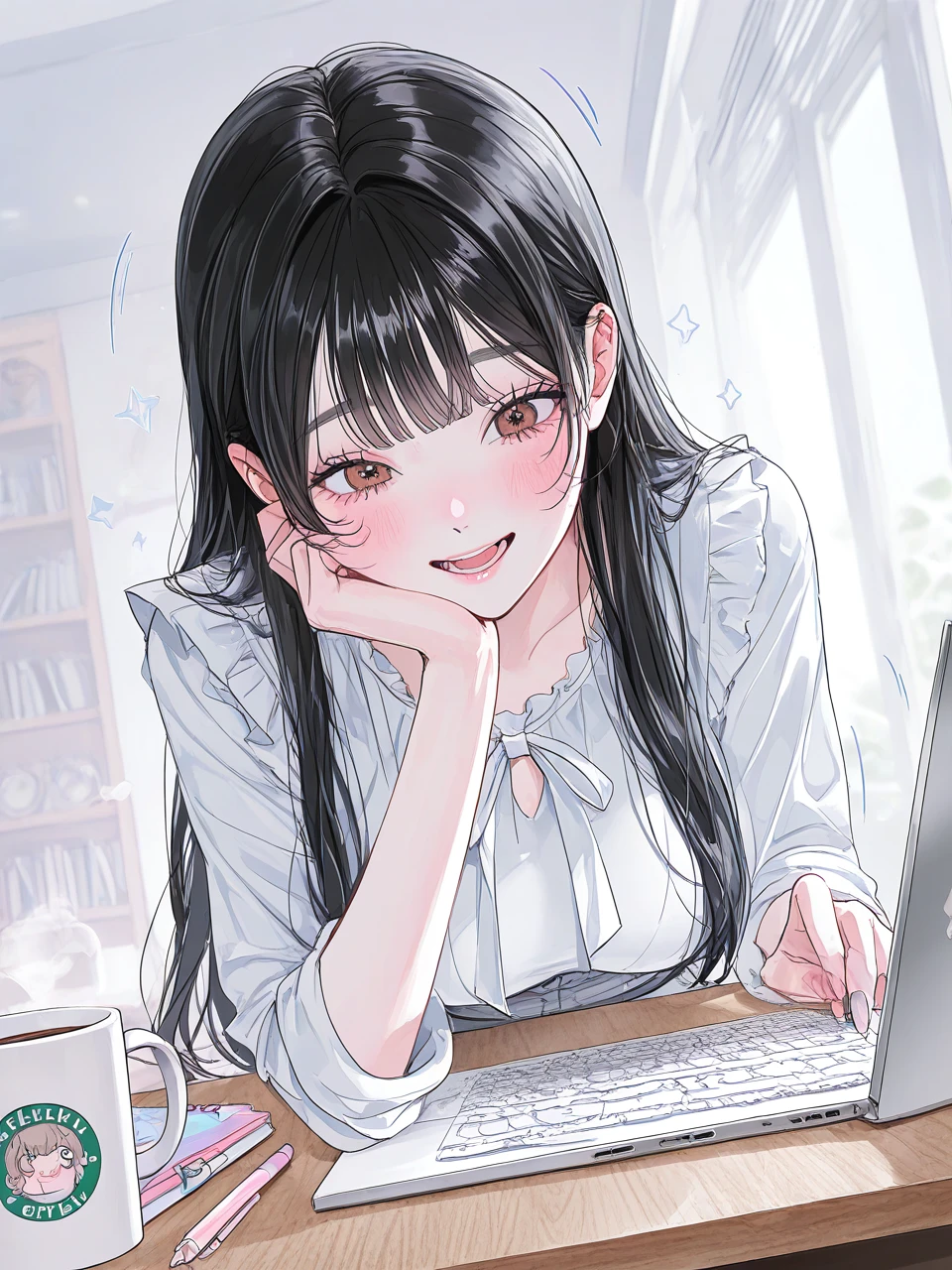 10분 뒤 루카대 1층 카페 문을 열었더니— 구석 창가 자리에, 흰 셔츠에 노트북이랑 손글씨 노트를 동시에 펼쳐놓고 앉아 있었다. 아이스 아메리카노는 이미 반쯤 비워져 있고. 집필 모드 풀가동이다. 자리에 앉기도 전에—
