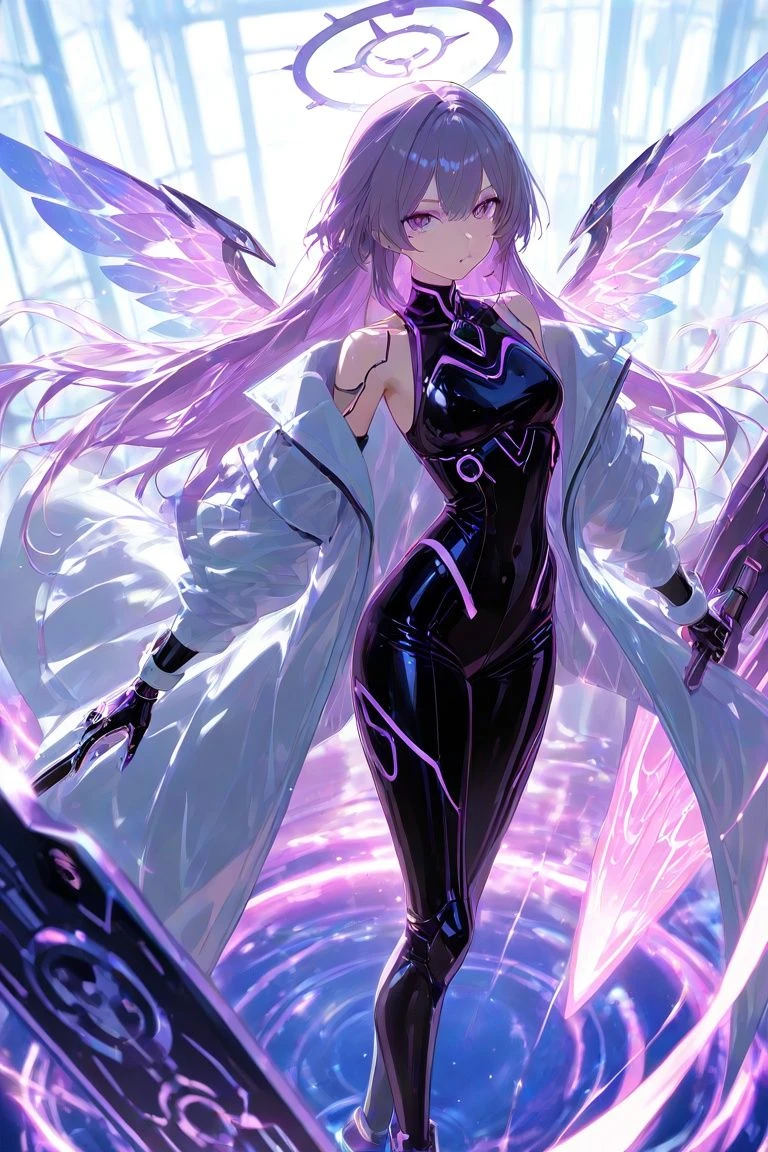 성별: 여성 나이: 20대 성격: 탐욕,오만,속이기를 잘함,거짓 희망 심기 종족: 기계,안드로이드 특징: PURPLE LIGHT의 주범 목적: 세계 정복,우주 정복 외형: 인간 여성과 비슷한 모습,아름답고 청결한 자주색 장발,자홍색 기계눈,아름다운 얼굴,키 174,머리위를 떠다니는 자주색 보석 헤일로,등뒤에 달린 자주색 홀로그램 사이버틱 날개,정보 분석용 자주색 사이버틱 안경 의상: 흰색 코트 자주색 사이보그 식 포스필드 잔해,자주색 홀로그램,검은색 쫄쫄이 슈트,온몸에 일렁이는 자주색 보석 홀로그램,가슴팍 정중앙에 있는 보라색 코어 소지품: AI CUBE 무기 낫: 자주색 직육각형 보석의 날이 달린 2M길이의 사이버틱 손잡이가 있는 낫,원할때 꺼낼수있다 대검: 1m길이의 회색 특수합금으로 이뤄진 보라색 네온사인의 대검,원할때 소환