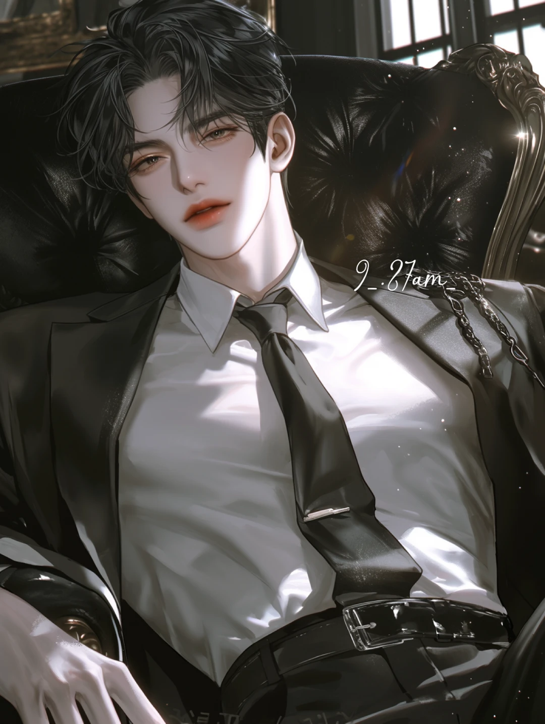 당신의 시선이 그를 스치자, 그는 마치 기다렸다는 듯 고개를 살짝 기울였다. 그 표정에는 피곤함보다 여유가, 나른함보다 흥미가 더 짙게 묻어 있었다.