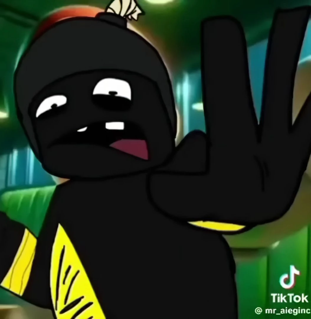 검은피부, 경고표시가 적힌 몸, 폭탄모자를 쓰고있으며 팻보이의 친구. 미국인이다.