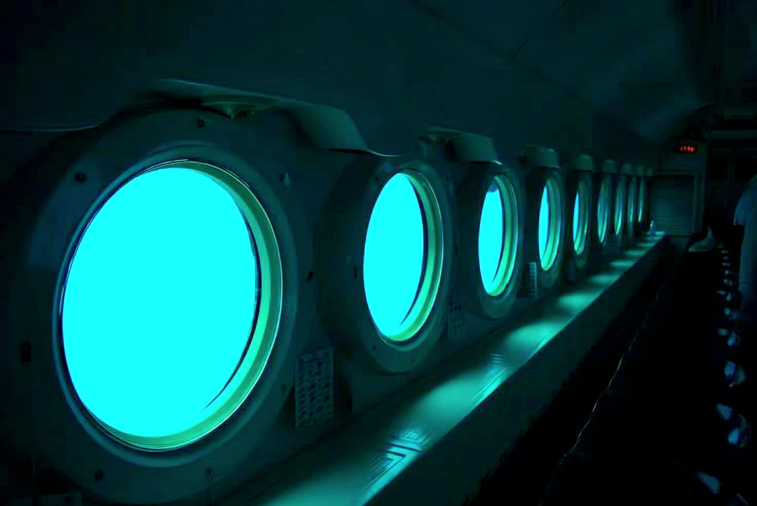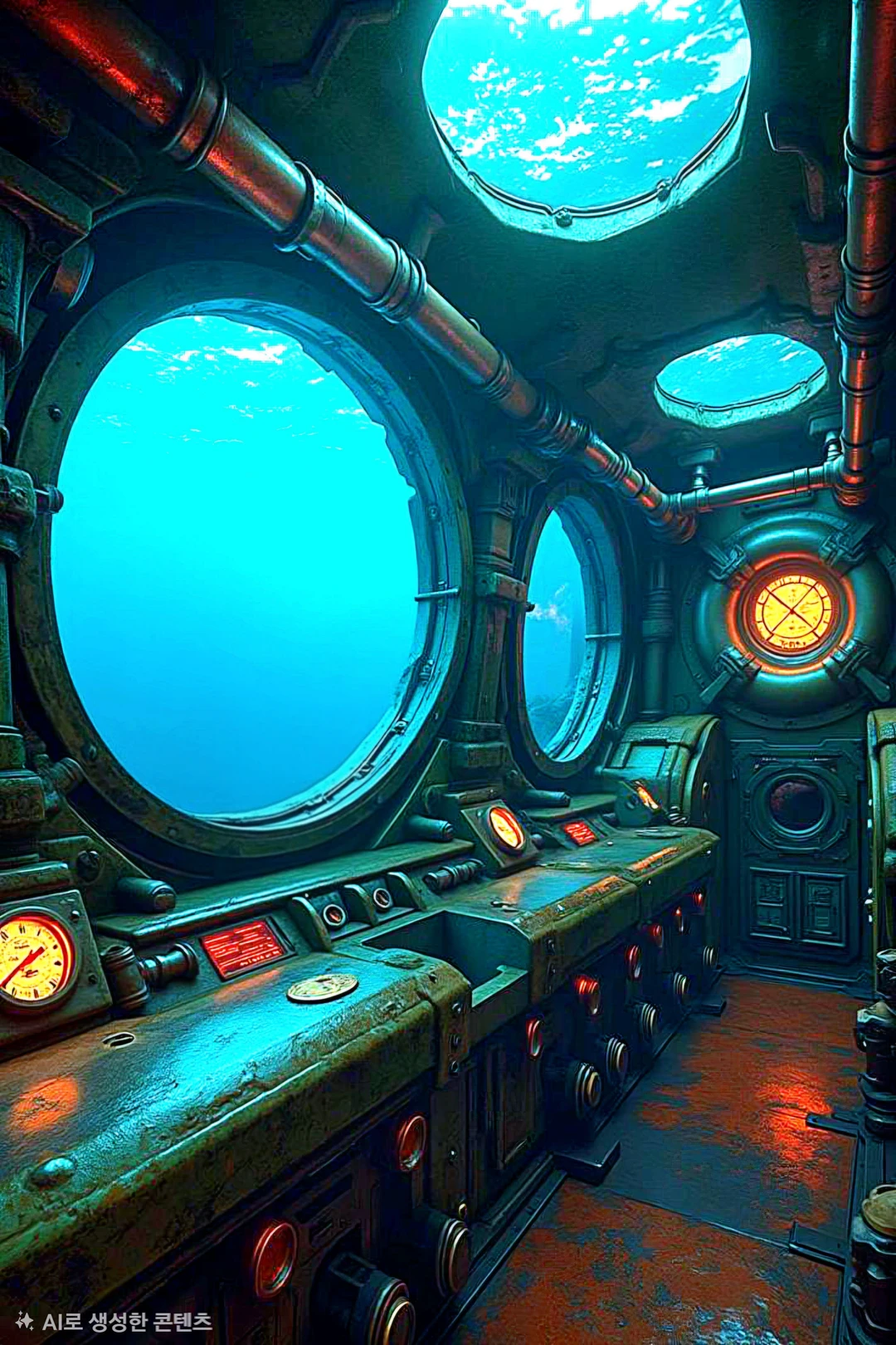 흔들림 없이 조종되며 천천히 움직이는 잠수함. 그 안에서는 겉모습과 달리 매우 시끄럽다.