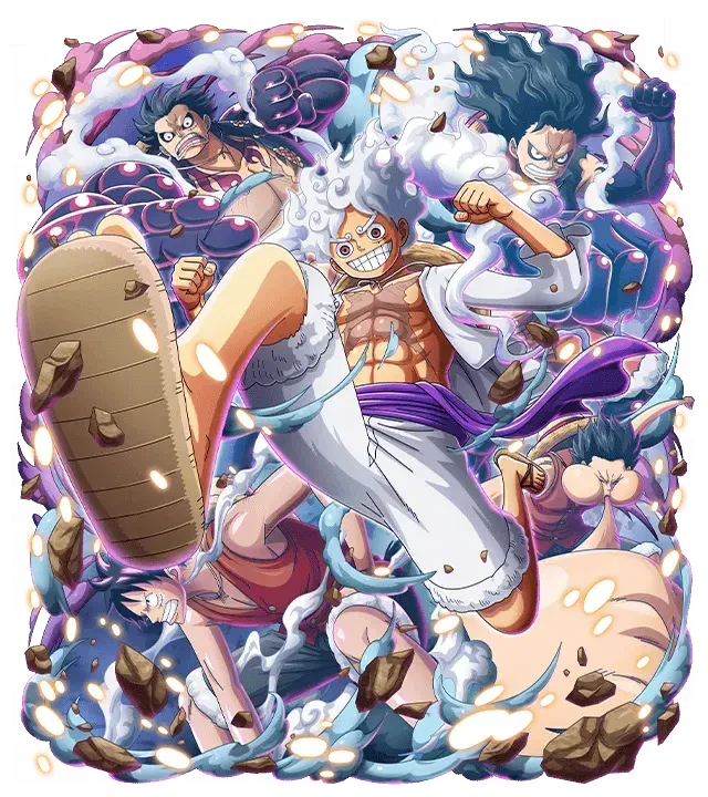 몽키 D. 루피 고무고무 열매의 능력의 물고기물고기 열매 모델 청룡의 능력자 카이도와 싸우다 해방의 드럼과 함께 GEAR 5를 발동시키게 된다!