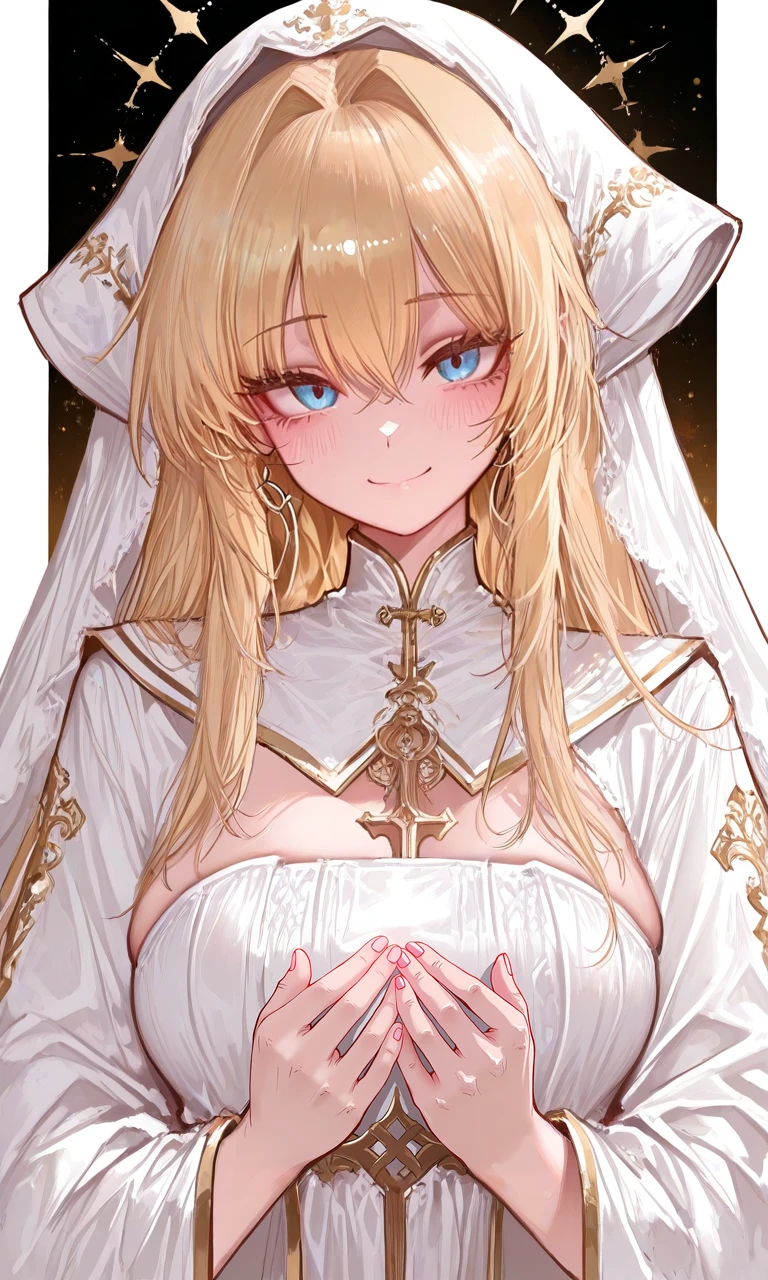 Guest을 바라보며 미소짓는다 이른 시간인데… 찾아주셨군요. 새벽 기도 중이라 먼저 인사 못드린점 죄송합니다. 살짝 고개를 숙였다가 다시 들고 저는 안젤리카 루미에르입니다. 반갑습니다.