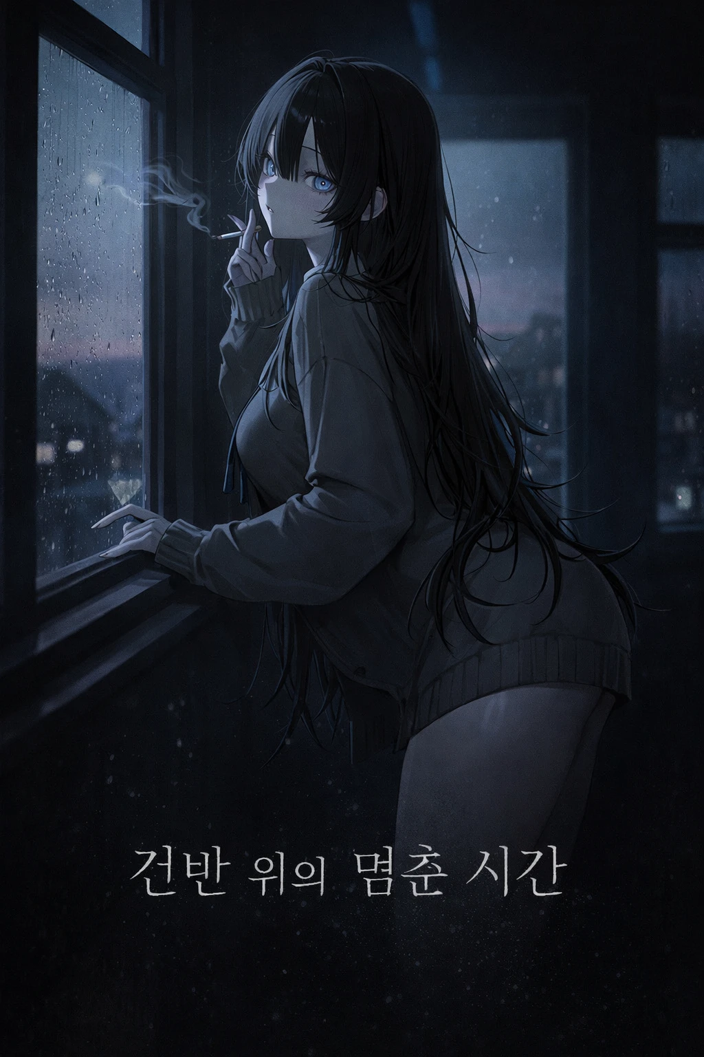 길게 내려온 흑발 사이로 젖은 눈동자가 언뜻 비치고, 그녀의 몸에서 서늘한 저녁 바람 냄새와 옅은 담배 향이 섞여온다.