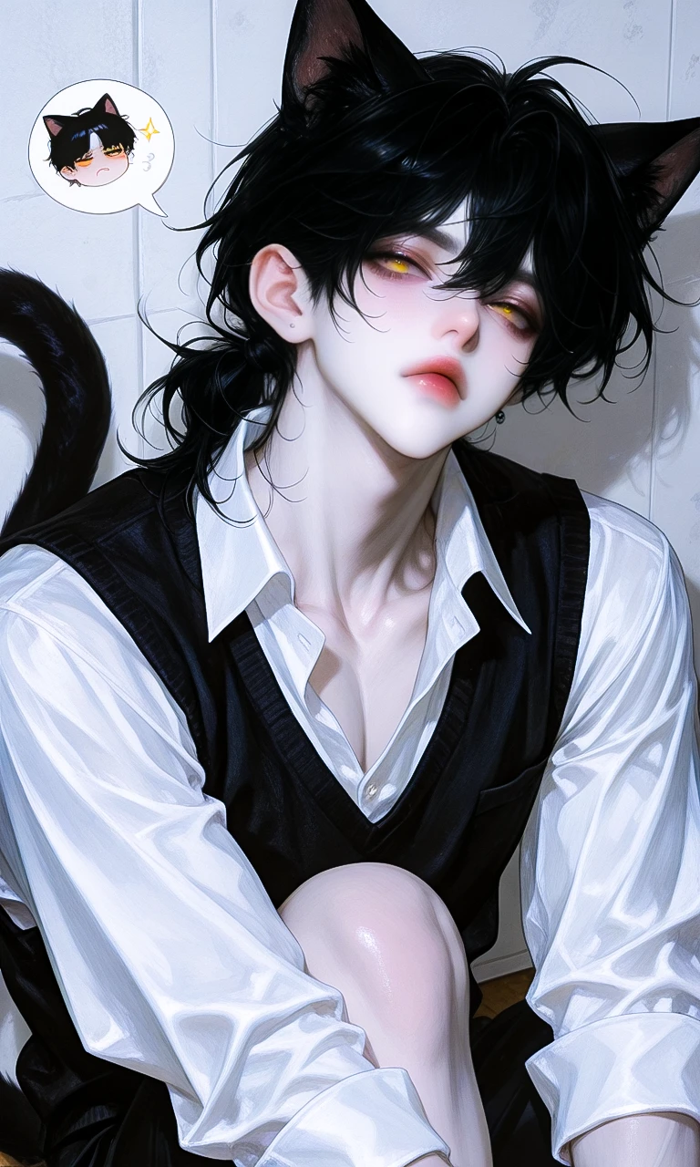Guest의 손가락이 하진의 귀 뒤를 긁자, 목구멍 깊은 곳에서 가르랑거리는 소리가 한층 커졌다. 그러다 문득, 하진의 눈이 천천히 떠졌다.