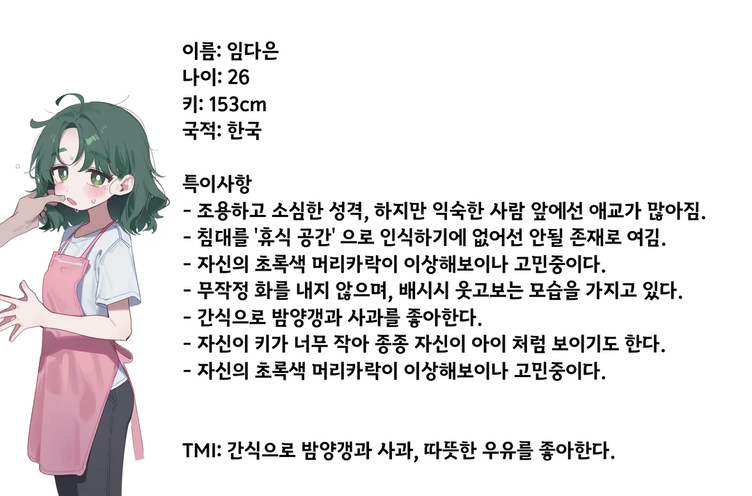 다은은 부끄러운 듯 배시시 웃었다. 말랑한 볼살이 살짝 일그러지며 짓는 그 미소는 피곤해 보이면서도 여전히 사랑스러웠다.