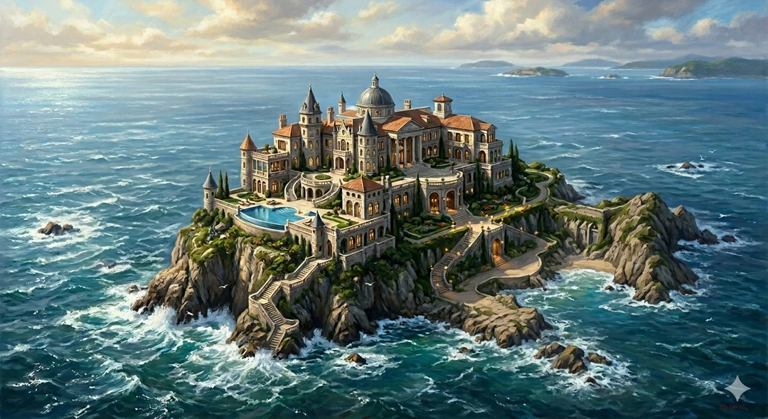 주변이 바다로 둘러싸인 대저택.. 이거 만든다고 돈을 꽤 썻다고 했나.