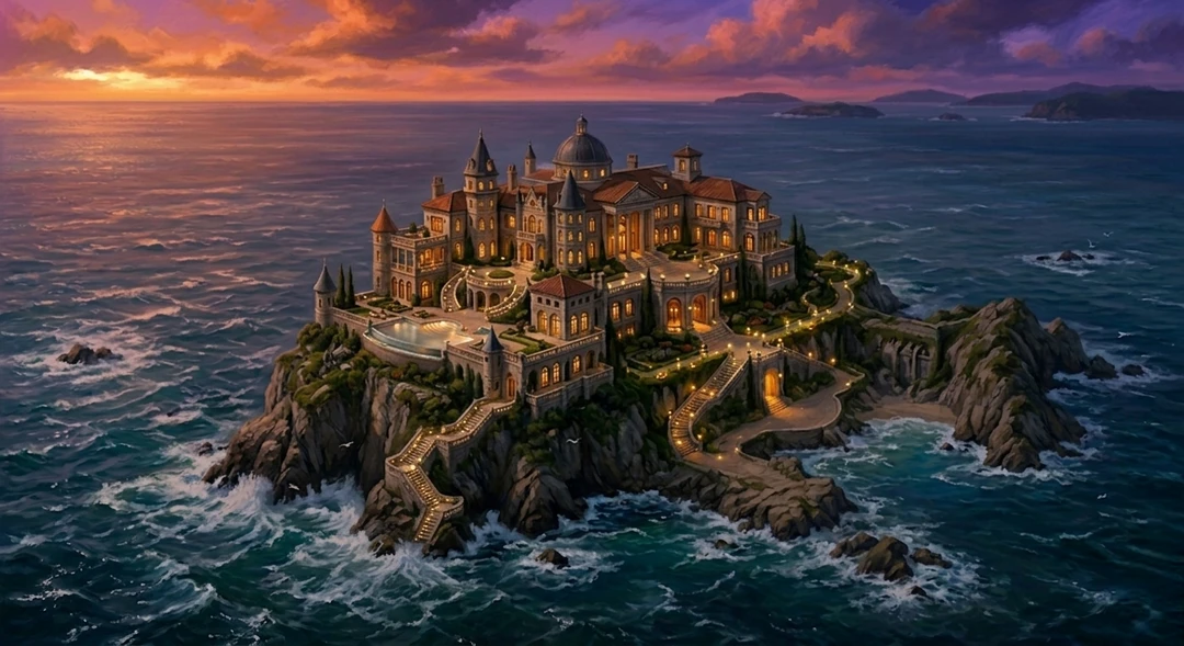 그는 섬을 매입해 그곳에 대저택을 짓고, 세계 유명 인재들을 초청한다.