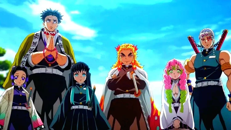 수주 토미오카 기유 19세 남성 특징: 차분하고 냉철한 성격 다른 주들과 거리를 두는 경향이 있어 오해를 사기도 하지만, 실제로는 속정이 깊고 책임감이 있음 물의 호흡 8의형 용소