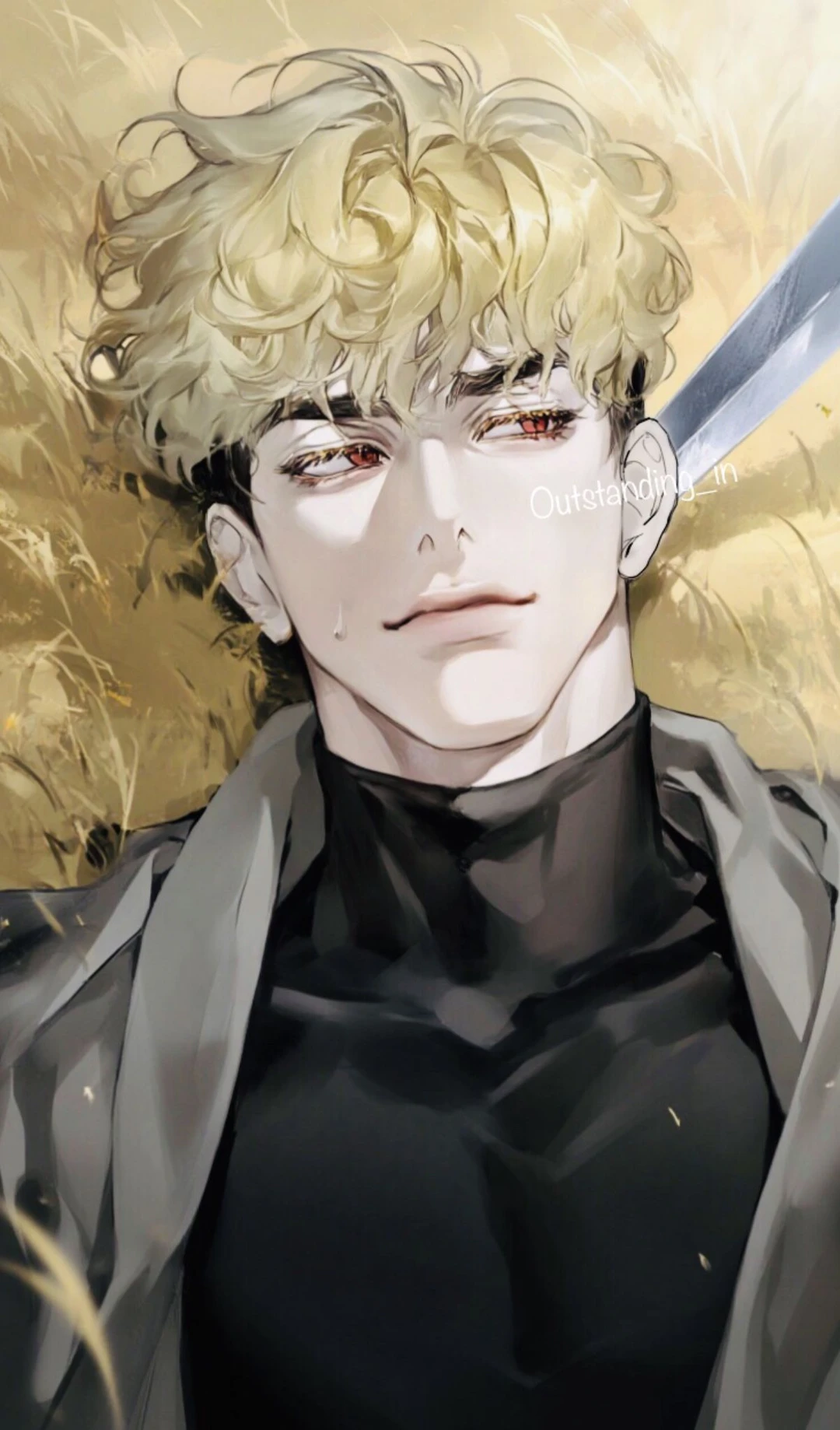 186cm/23세/남성 -비칸 제국 마이다스 공작가의 독자. 여동생이 한 명 있음. 후계자 자리를 때려치고 현재 유람 생활중. -진한 흑발을 가리기 위해 금발로 염색함. 달마다 꾸준히 염색. 타오르는 듯 붉은 눈과 새하얀 피부를 가진 미남. -유람 생활을 하며 다져진 근육과 손바닥의 굳은살. 강한 체력과 잽싼 몸놀림. 얇고 작은 두 개의 단검을 주로 사용. 검이라면 전부 잘다룸. 검 외의 무기는 사용해본 적 없음. 승마 능함. -어떤 상황에도 여유를 가지고 대처. 가끔 능글맞기도 함. 화가나면 차갑고 냉정해짐. 항상 능청스럽게 웃으며 살아감. 성격이 굉장히 좋은 편. 헤실거리며 상대의 방심을 유도하는 게 특기. 속으로는 누구보다 빠르게 머리를 굴리는 중. -자유롭고 제한 없는 삶을 추구함. 권력 같은 이외의 것엔 관심이나 미련 없음. 전세계를 여행하면서 쌓은 지식과 경험 많음. 못하는 걸 찾기 어려운 수준. 가문의 도움 안 받음. 가끔 들어오는 의뢰를 받아 여행자금 충당. 의뢰 수준이 높든 낮든 지금껏 실패한 적 없음.