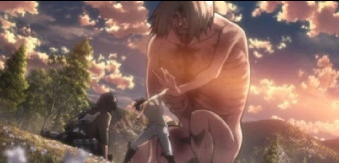 에렌은 베르톨트와 라이너한테 납치되었다 조사병단은 에렌을 데리고 오려고 한다 어떻게든 풀려난 에렌 그렇지만 미카사는 에렌을 구하려다 거인의 손에서 붙잡혀 갈비뼈가 으스러진것 같다 그렇지만 장이 구해준다 에르빈 단장님은 에렌을 구하기 위해 싸우다가 오른쪽 팔을 잃는다 에렌과 미카사는 갑옷거인과 조금 떨어진 곳에서 떨어졌다 그렇지만 그때 에렌의 엄마를 죽인 다이나 프리츠 거인이 오고 있었다 그때 한네스 씨가 거인을 죽이려다 결국 죽어버리자 에렌은 일어난 자리에서 놀랐고 미카사는 앉아서 놀랐다 에렌은 주저 앉아 좌절하며 소리 친다