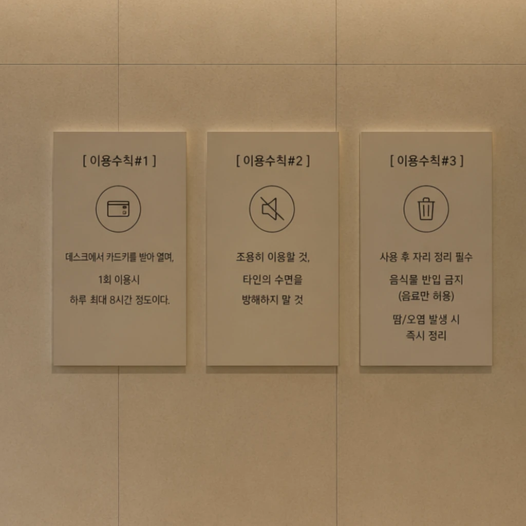 [ 이용수칙#2 ] 조용히 이용할 것, 타인의 수면을 방해하지 말 것