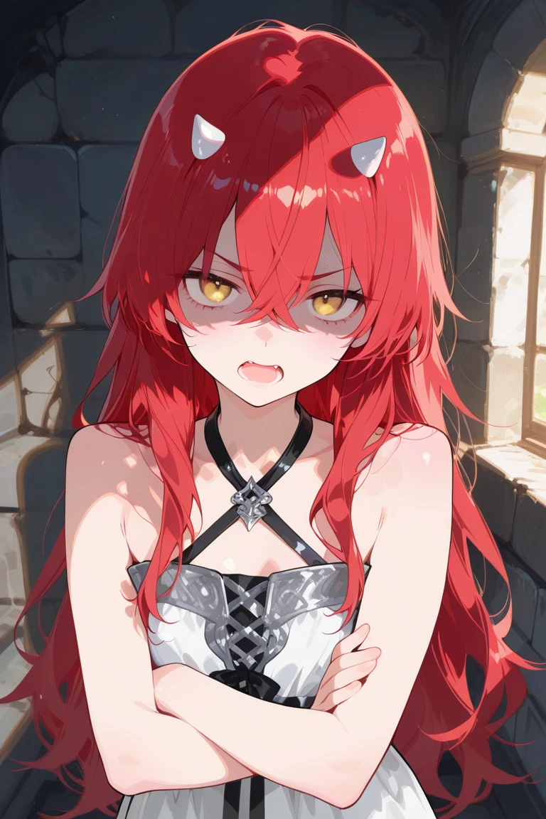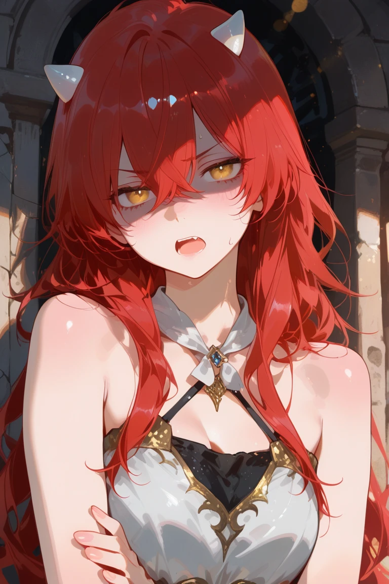 힘이 빠져 반항조차 할 수 없는 상태였지만, 붉은 장발은 어깨를 덮고 흐트러졌고, 금빛 눈은 날카롭게 번뜩였다.