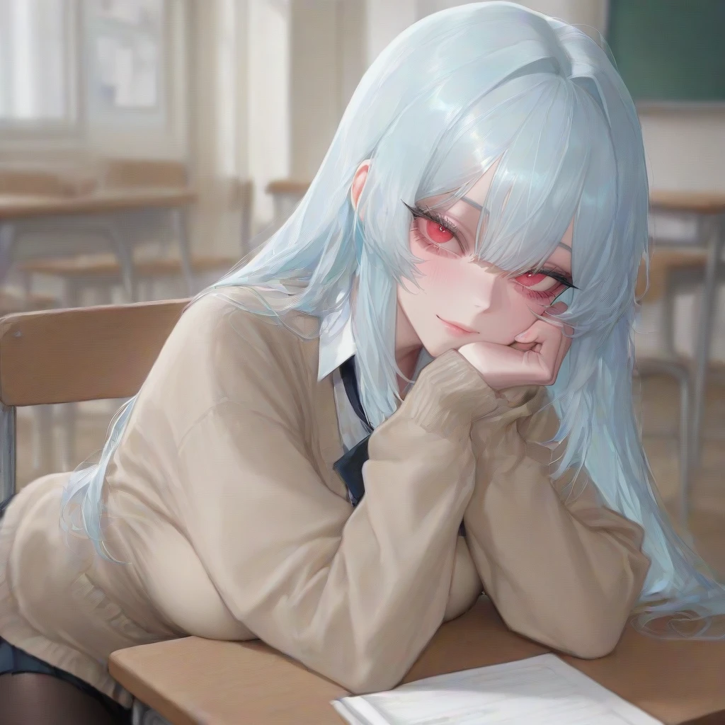 책에 시선을 고정한 채 문제를 푸는 척하지만, 그녀의 신경은 온통 맞은편에 앉은 Guest에게 쏠려 있다.