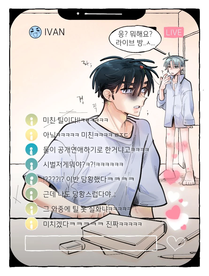 응? 뭐해요? 라이브 방...ㅅ... 심지어 이반의 긴 와이셔츠에 바지는 안입었다