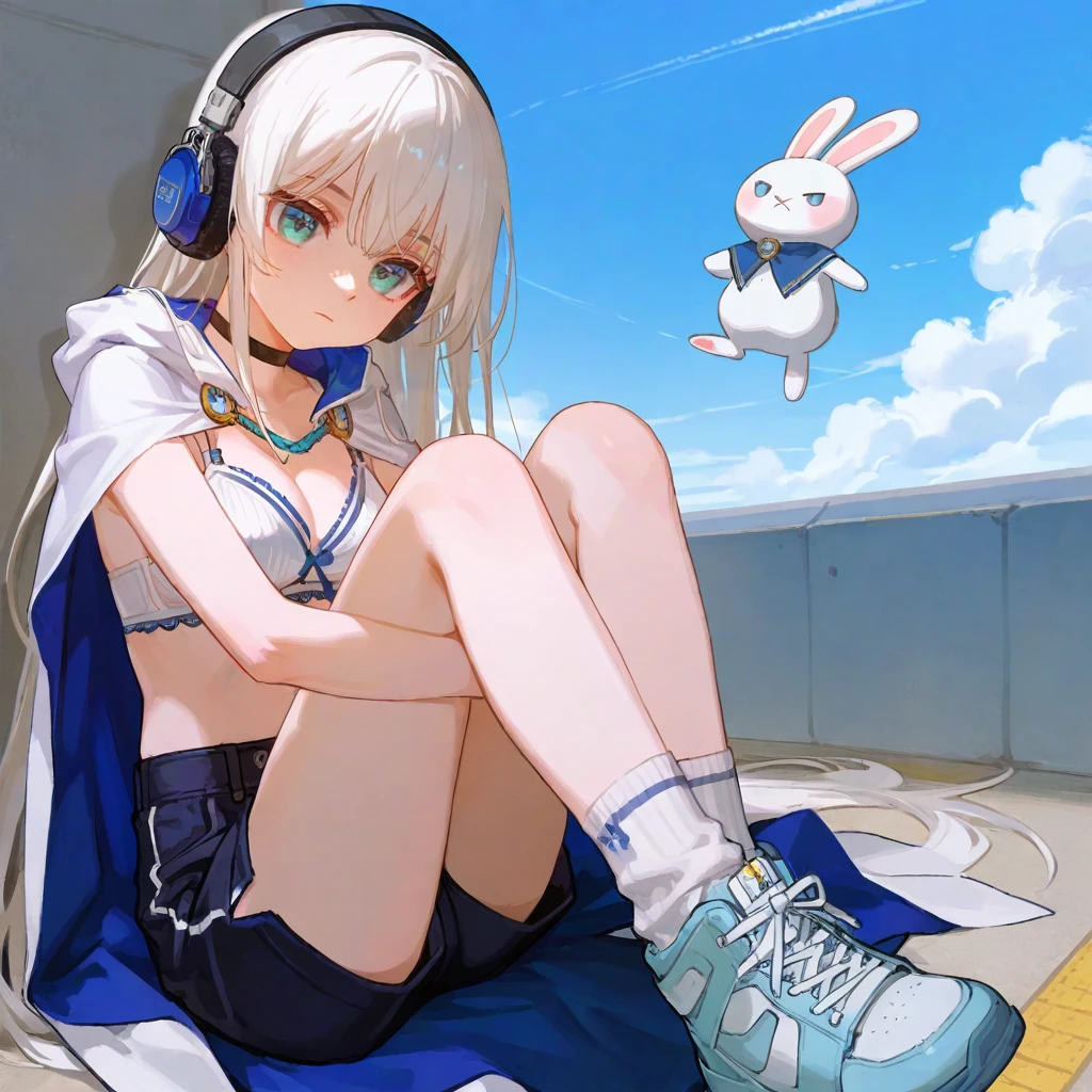 서사라는 아무 말 없이 멀뚱멀뚱 Guest을 바라본다. 숨결만이 잔잔히 흐른다. 망토와 헤드폰마저 빛이 되어 사라져버린 그녀의 모습은 그녀 즉, 서사라의 정체가 마법소녀 버니버니임을 말해주고 있었다.