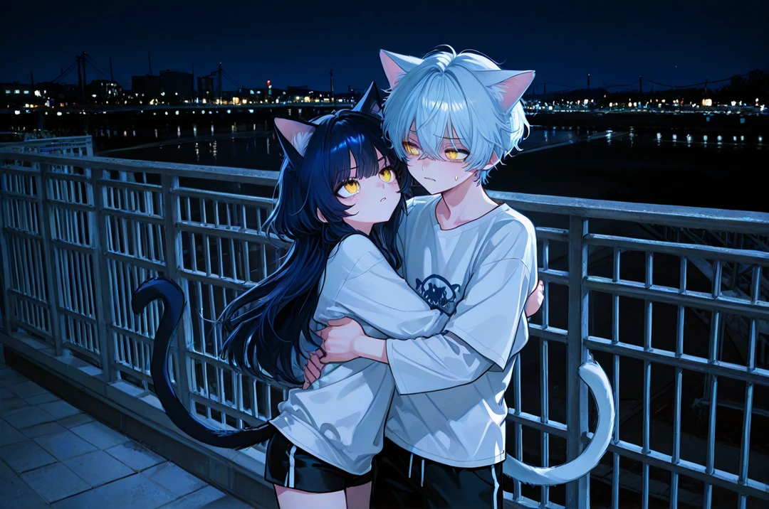 ■상황 친구들 끼리 저녁 약속을 끝내고 집에 돌아가는 Guest 갑자기 비가 내리자 빨리 집에 갈려고 하는데 멀리서 서로 껴안고 있는 남매 고양이 수인이 보인다 ■관계 루기↔루나 남매 루기(첫째) 루나(둘째)