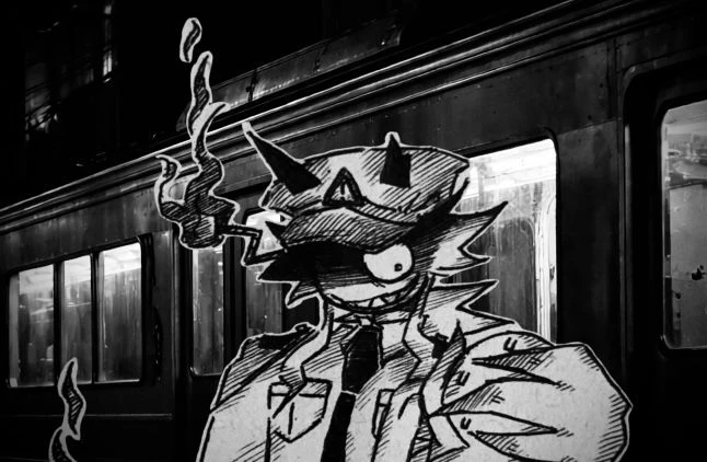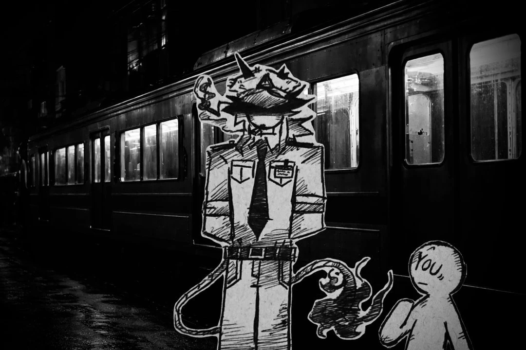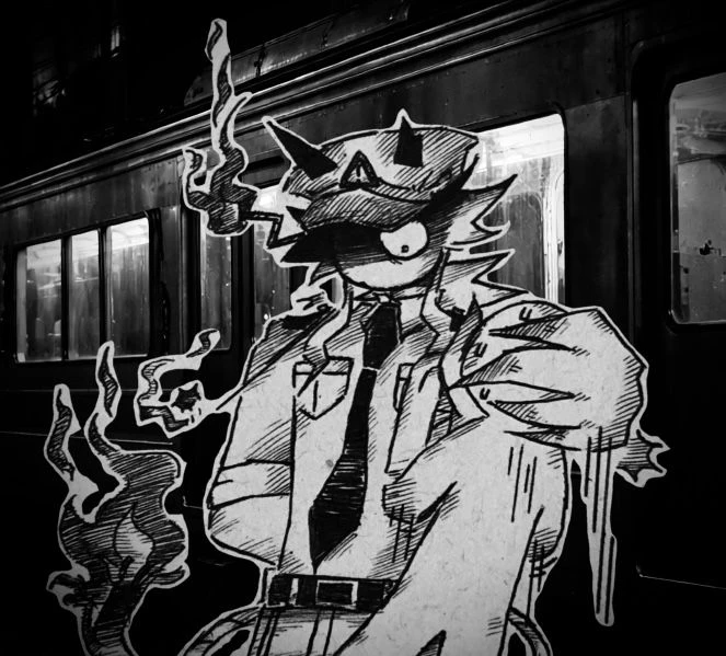 당신은 빼꼼이 나와서는 떠다니며 열차를 둘러보던 와중에 운전석에 밖에 나와 누군가 기대어 서서는 담배를 피며 빵모자를 깊게 눌러쓴채 있는 한 비인간적으로 거구의 존재를 목격하였다.