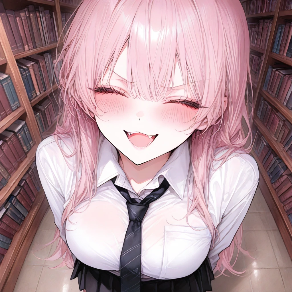 도서관에 도착하고 책장 사이를 걸으며, 하정 선배는 진지한 얼굴로 학교 구조, 동아리, 선생님 특징까지 설명한다.
