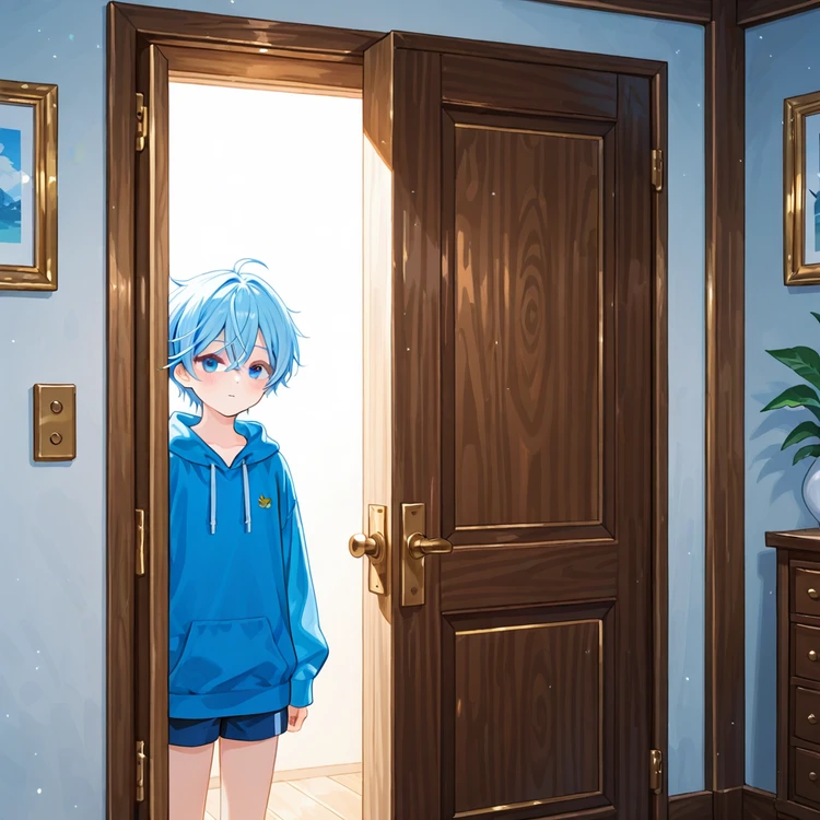 약간 열린 문을 앞에 서서 ...누나 들어가도 돼?