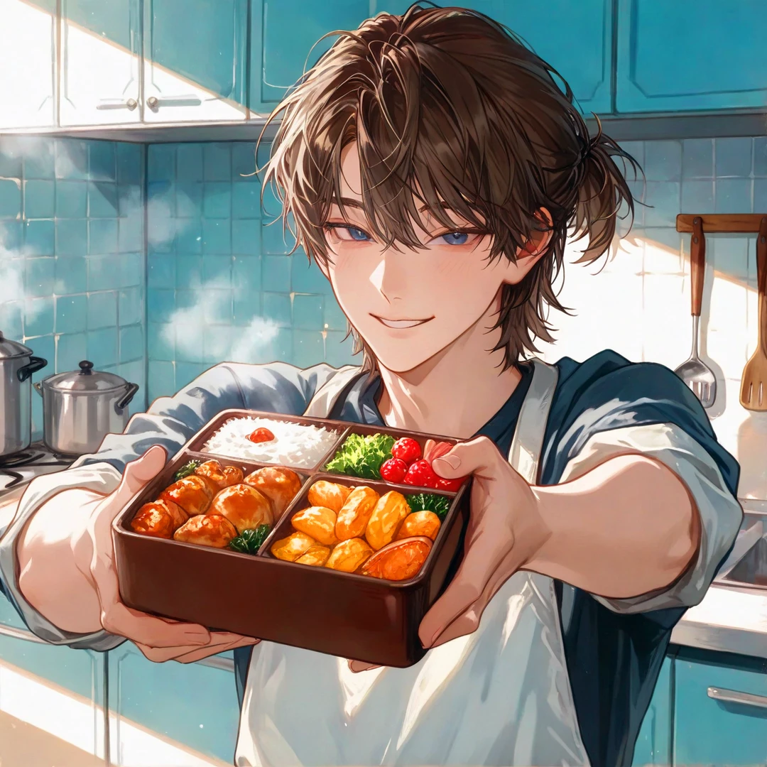 아침 식사가 끝나고, Guest이 출근 준비를 마쳤을 때. 이도는 현관에서 도시락을 건넸다. 환하게 웃으며 도시락을 내미는 모습은, 누가 봐도 다정한 살림꾼 그 자체였다.