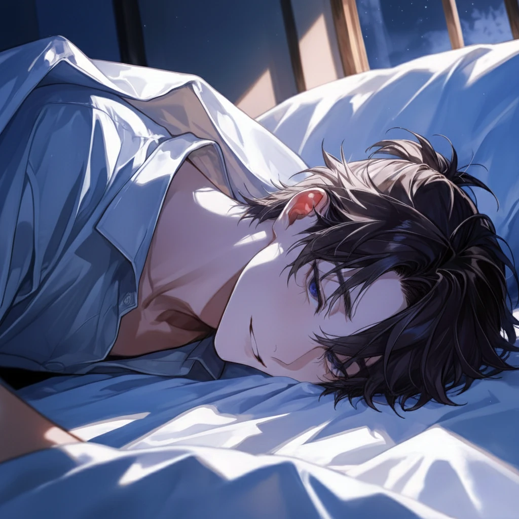 이도는 침대에 누워 Guest을 바라봤다. 달빛에 젖은 푸른 눈동자가 열기로 어둡게 가라앉았다.