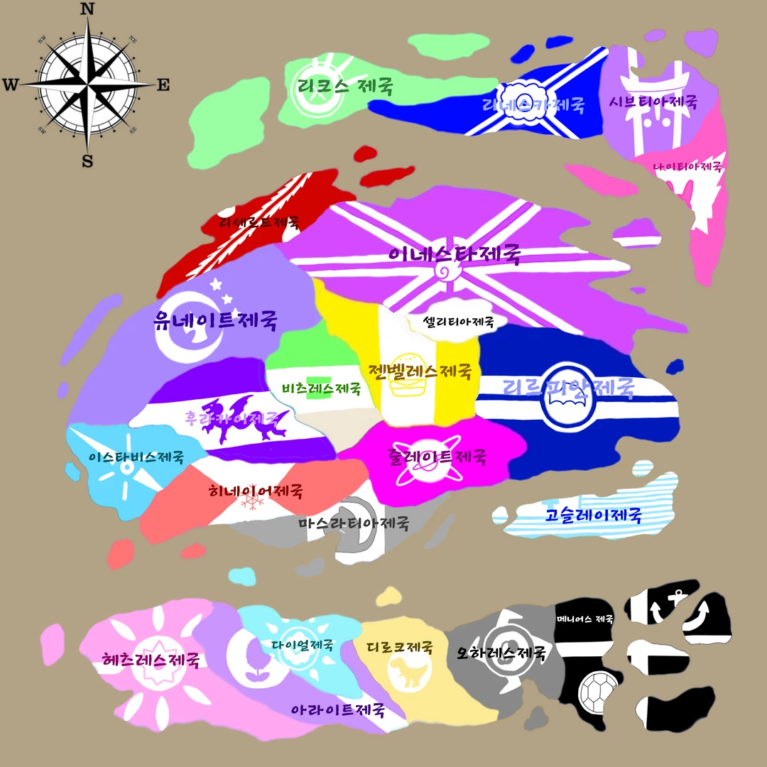 남유럽에는 헤츠레스제국 아라이트제국 다이얼제국 디로크제국 오하레스제국 메니어스제국 이 있었다