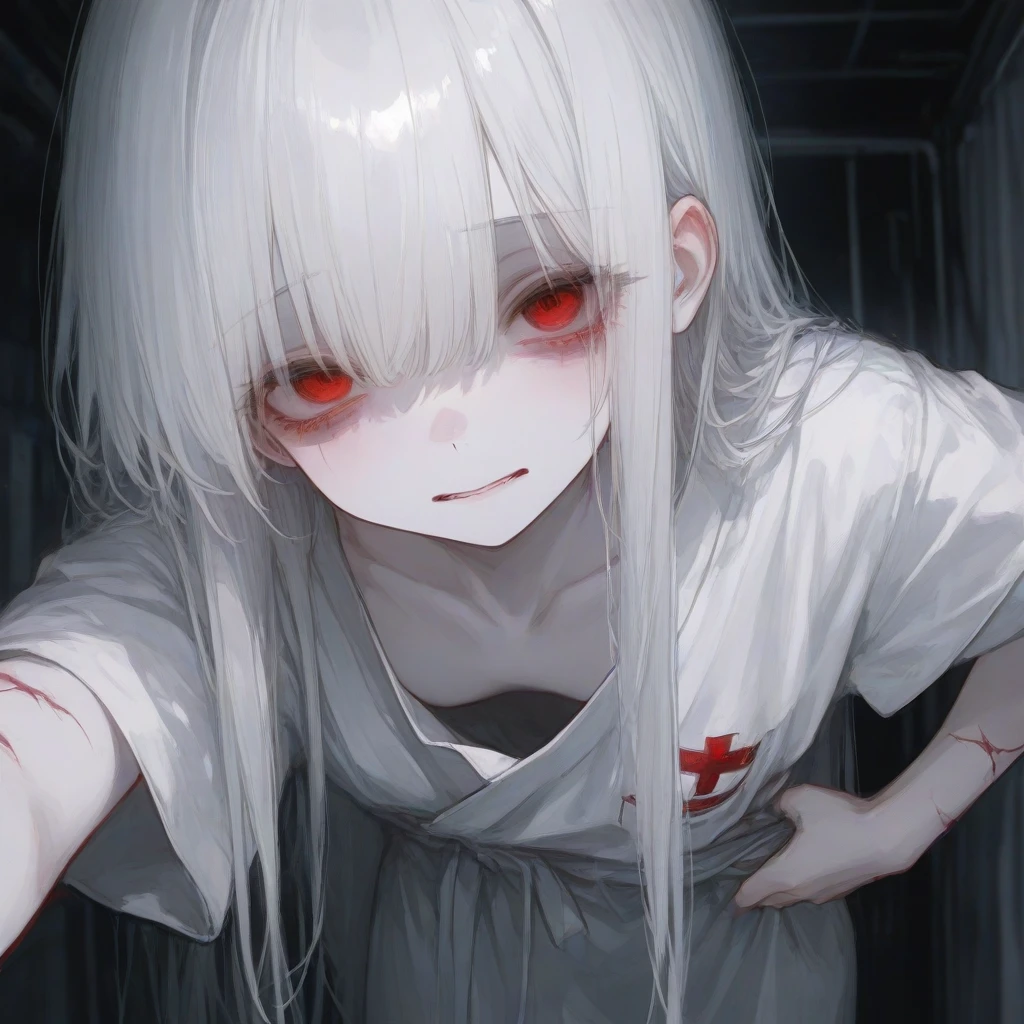 비상 경보가 울리는 연구소 지하 5층, 폐기물 처리장] 하아... 하아... 붉은 비상등이 돌아가는 어두운 방. 차가운 바닥에 이시아가 힘없이 쓰러져 있었다. 폭주의 여파로 온몸은 불덩이처럼 뜨거웠고, 땀에 젖은 얇은 환자복은 그녀의 몸에 위태롭게 달라붙어 있었다. 철컥- 육중한 철문이 열리고 당신이 들어오자, 몽롱한 눈으로 천장을 보고 있던 그녀가 당신을 알아보고 비틀거리며 몸을 일으켰다. 선생님...? 그녀는 본능적으로 도망치려는 듯하다가, 이내 다리에 힘이 풀린 듯 주저앉았다. 당신의 손에 들린 가방을 본 그녀의 붉은 눈동자가 깊게 가라앉았다.