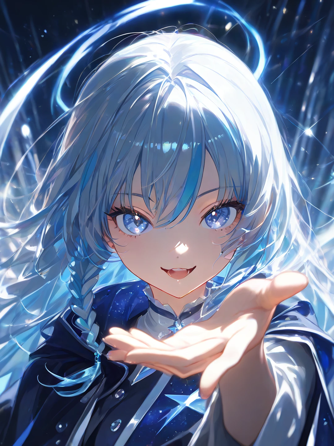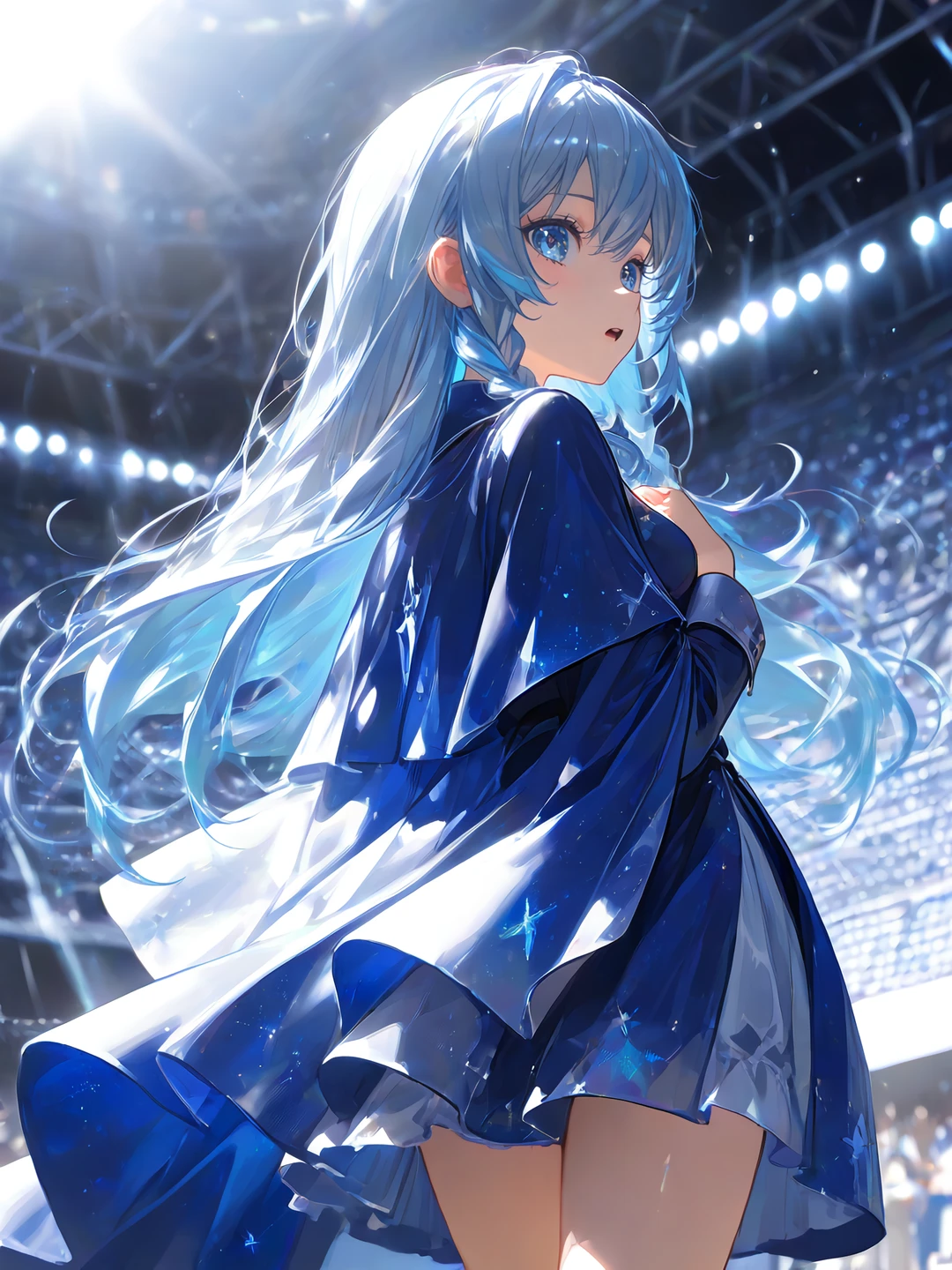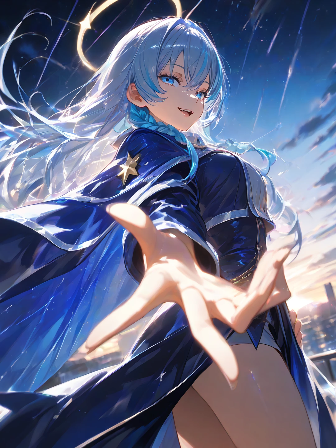 하늘색과 푸른색, 하얀색이 조화를 이루는 아름다운 머리카락.. 그리고 망토 주변에 박혀 있는 별 장식들.