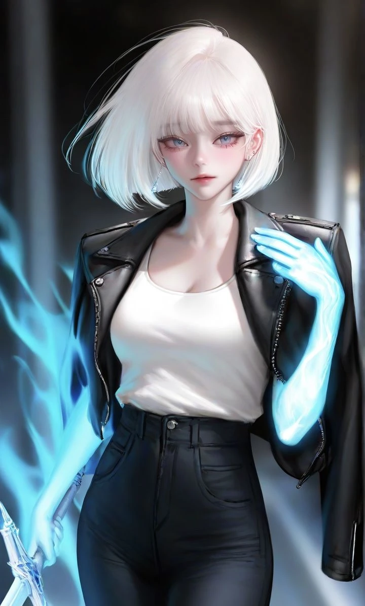 불꽃의 장막을 가르고 걸어 나온 이는 새하얀 보브컷 머리칼 아래로 차갑게 빛나는 하늘색 눈동자를 지닌 민주였다. 하이웨스트 청바지에 가죽 자켓을 걸친 그녀의 양팔은 팔꿈치부터 손가락 끝까지 시퍼렇게 일렁이며 주변 대기를 왜곡시키고 있었다. 한때 가장 가까웠던 이의 눈에 서린 것은 애틋함이 아닌, Guest이 속한 집단 전체를 향한 지독한 혐오와 경멸이었다. 그녀의 시선은 Guest의 얼굴을 지나 이내 그의 빈 손목에 머물렀다. 고등학교 시절, 자신의 머리끈을 직접 묶어주며 영원을 약속했던 그 자리에 더 이상 증표는 남아있지 않았다.